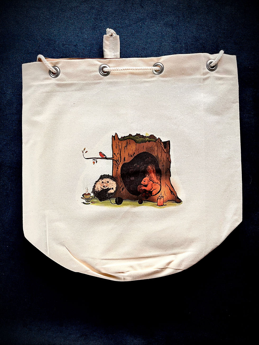 Ja jestem zachwycona, ponieważ są wykonane z bardzo miłej ekologicznej bawełny, uszyte w polskiej szwalni. Dzięki delikatniejszemu splotowi nadrukowane ilustracje wychodzą przepięknie. Druk wykonany jest w technice termotransferu w lokalnej przemiłej drukarni. Woreczki mają wszytą jedną kieszonkę. Zmieści się do nich sweter i jeszcze zostanie miejsce na inne akcesoria czy portfel lub komórkę.